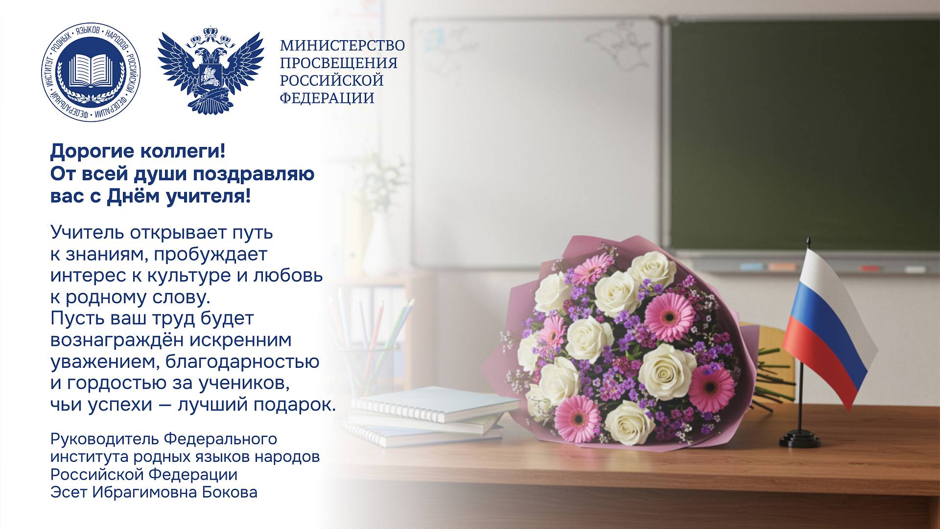 Поздравление руководителя Федерального института родных языков народов Российской Федерации Эсет Ибрагимовны Боковой