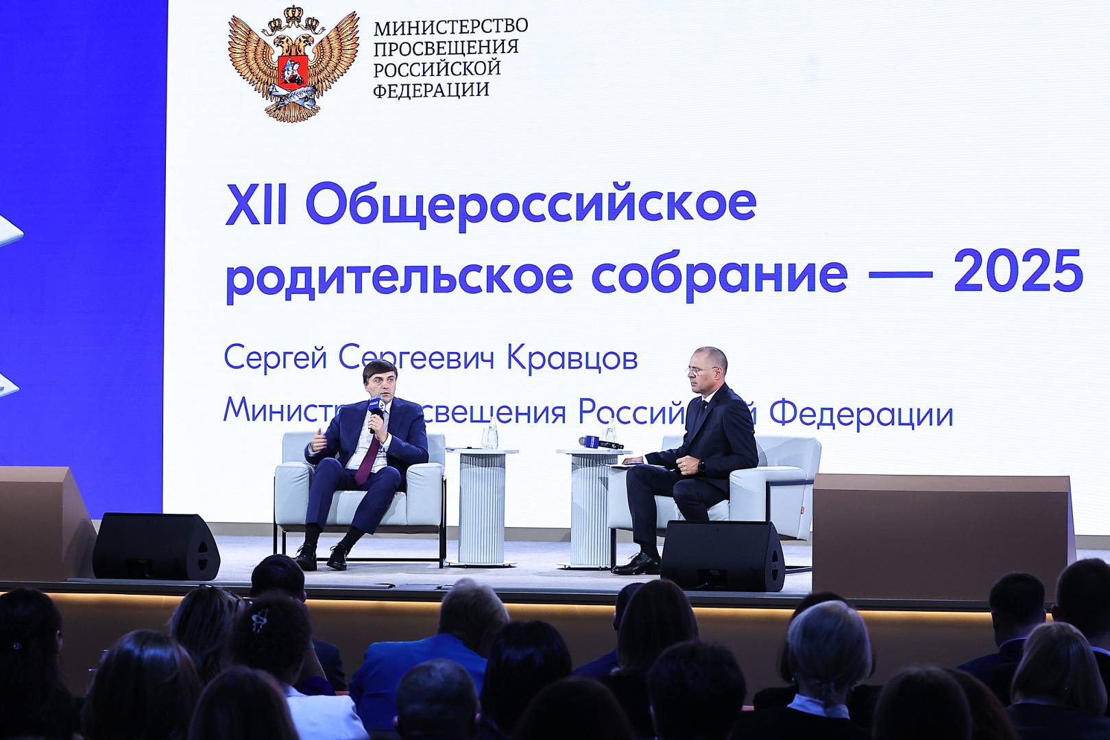 В Москве в Национальном центре «Россия» 26 августа прошло XII Общероссийское родительское собрание. Глава Минпросвещения России Сергей Кравцов ответил на вопросы родительского сообщества о создании единого образовательного пространства, повышении интереса молодежи к профессии учителя и повышении эффективности воспитательной работы с детьми. Участие в мероприятии приняли представители 53 регионов России.