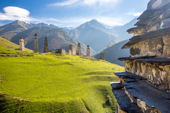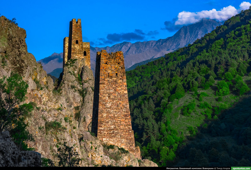Народы, которые проживают на территории субъекта:русские, ингуши, чеченцы, русские, турки, казахи Используемые языки народов: русский, ингушский, чеченский Язык(и), которые изучаются в системе общего образования: русский, ингушский, чеченский Тхаба-Ерды - возвышающийся на горе над Ассинским ущельем православный храм Эгикал – один из самых крупных башенных комплексов Ингушетии Эрзи - комплекс башен в Джейрахском районе Ингушетии Цей-Лоам (Цейлом) — скалистый доломитовый хребет на юге Ингушетии |